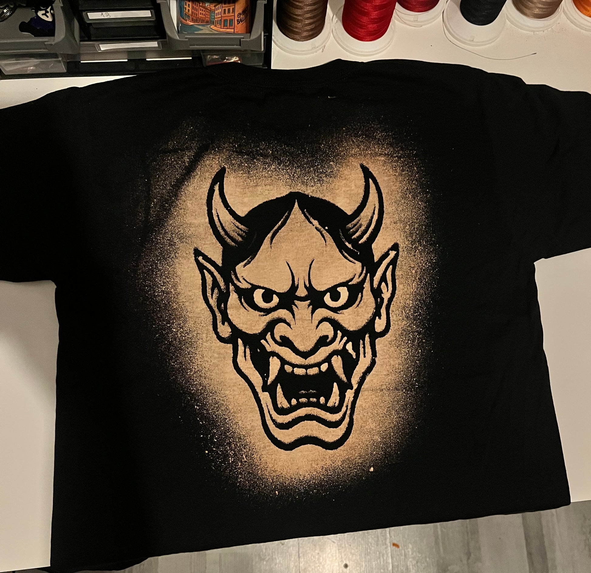 Az Oni maszk a japán mitológiában az erőt és a bátorságot szimbolizálja — ezt a póló is sugározza.