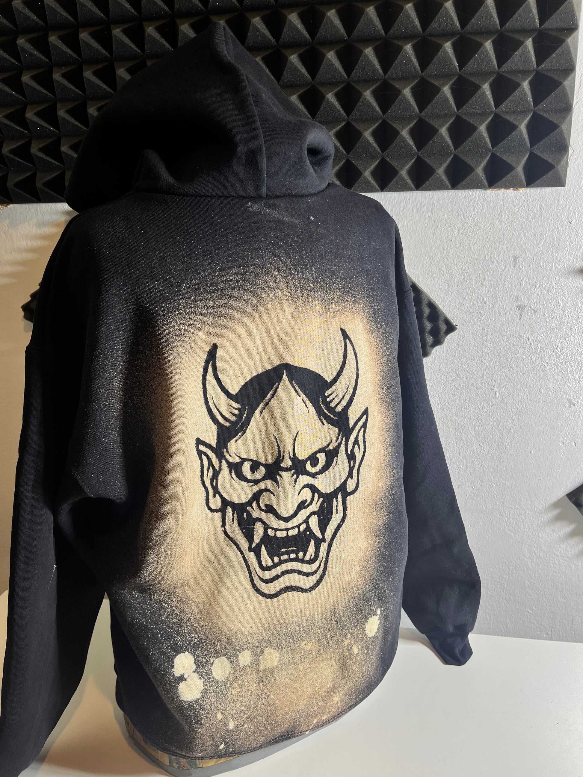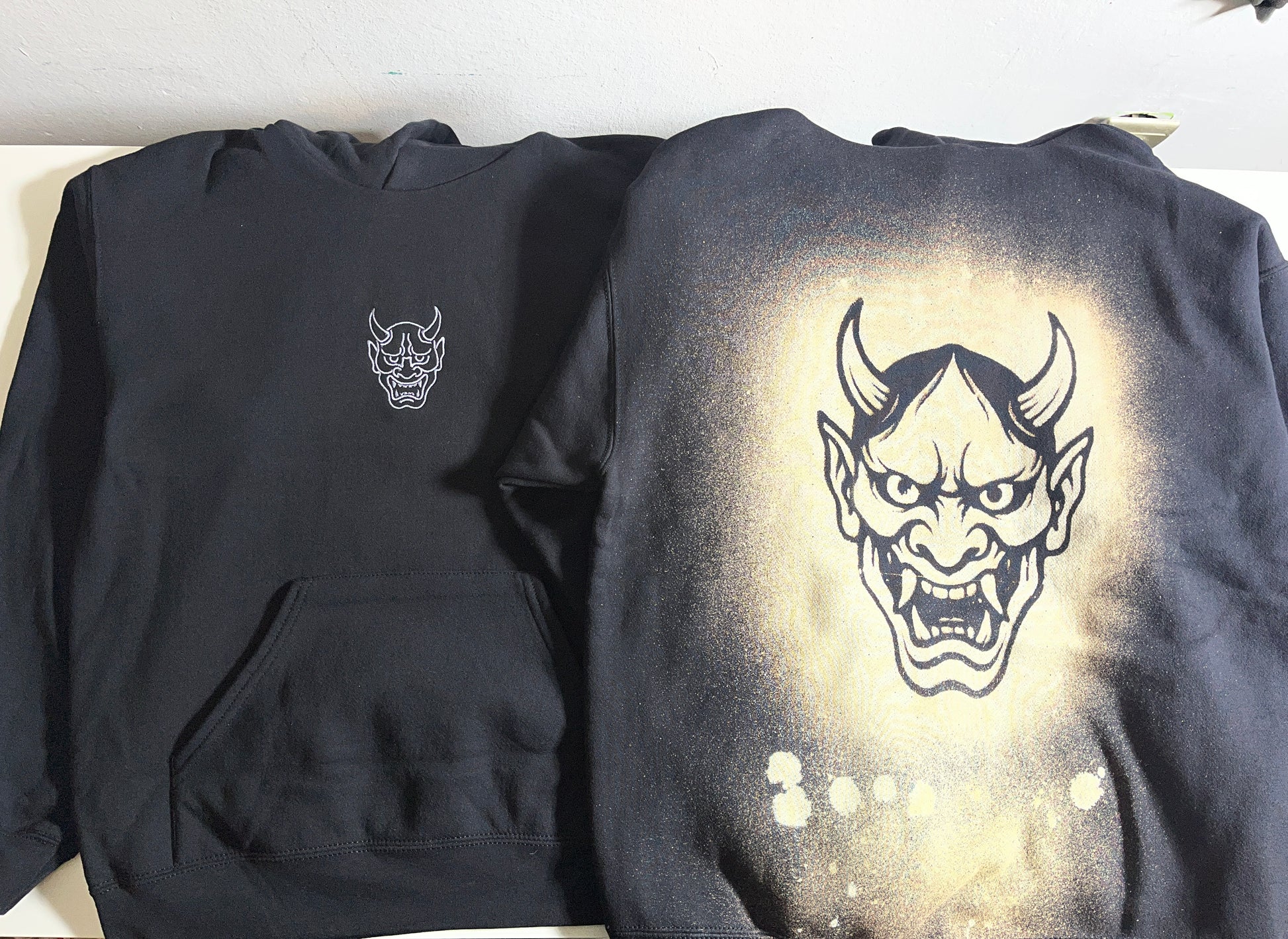 Tűnj ki a tömegből ezzel az egyedi, kézzel készített Oni maszkos Pulóverrel. A hátoldalon látványos, szórt festéstechnikával készült japán démonmaszk minta kapott helyet, az elején pedig egy hímzett maszk adja meg az utolsó, prémium részletet.